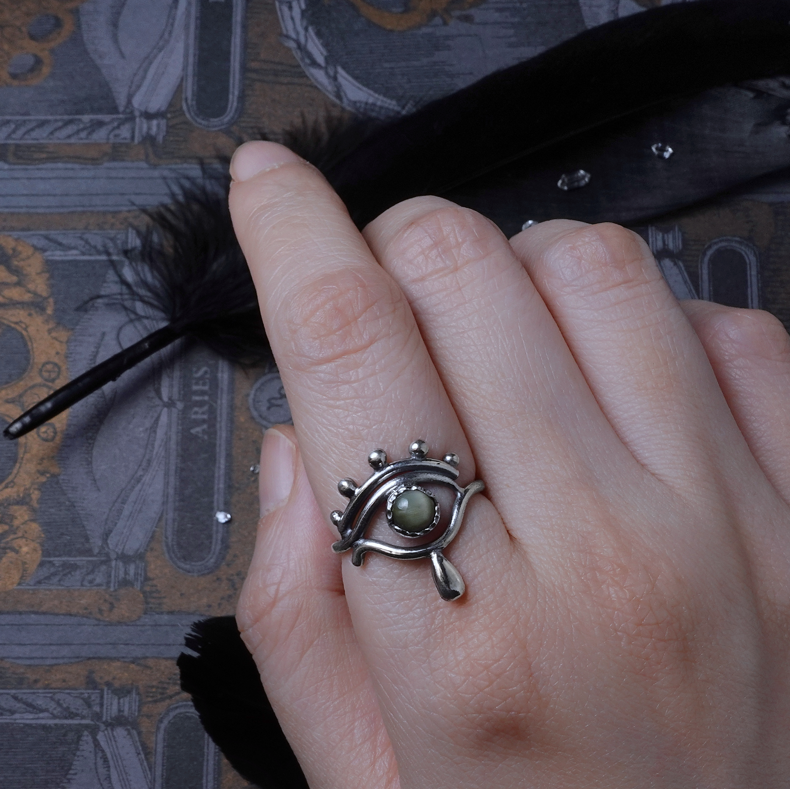 淚水成詩。金綠貓眼純銀戒(右眼)